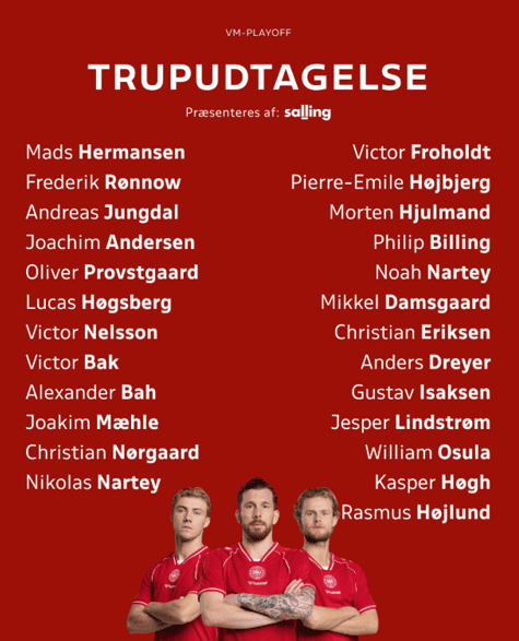 Jesper Lindstrøm smutter med i dansker-bilen fra Wolfsburg, hvorfra også Christian Eriksen og Joakim Mæhle er udtaget. En trio af spillere, som på klubplan har det ufatteligt svært, men Eriksen kommer dog som nyvalgt anfører for holdet efter klubbens seneste trænerskift.