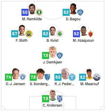Ugens hold hos Sofascore.dk udpeger de højest ratede spillere på bestemte positioner i en bestemt runde. Det er baseret på ratings af spillere i enkeltkampe i den samme runde inden for en bestemt turnering. Det er med andre ord baseret på ren statistik, og man er velkommen til at være uenig.